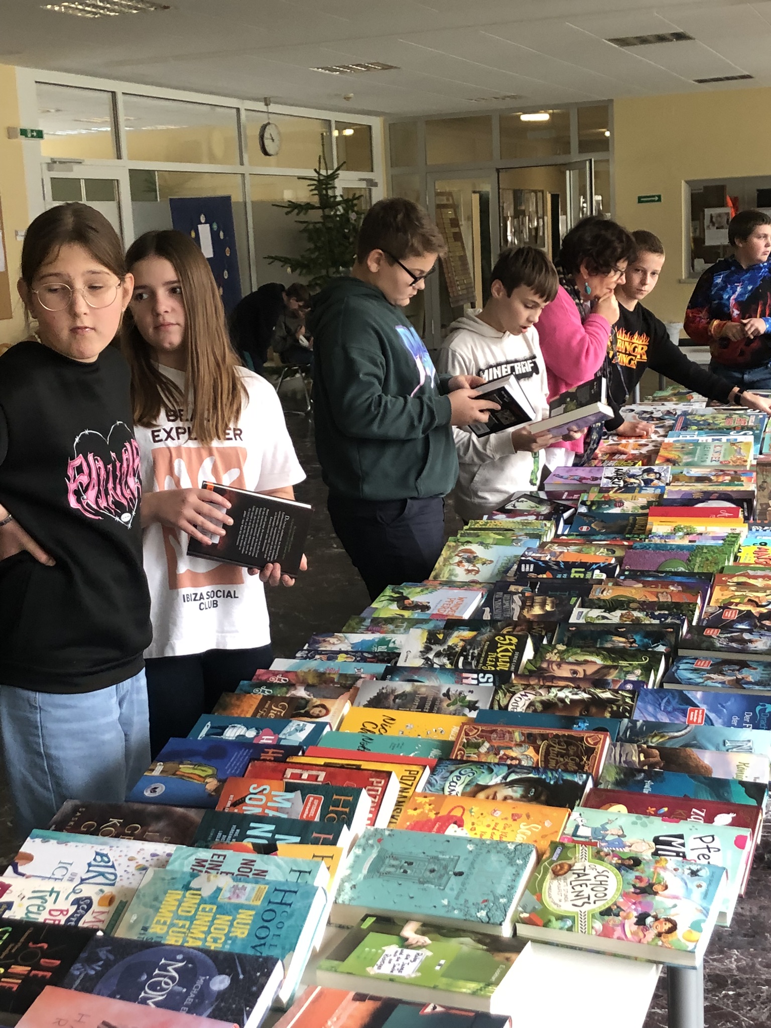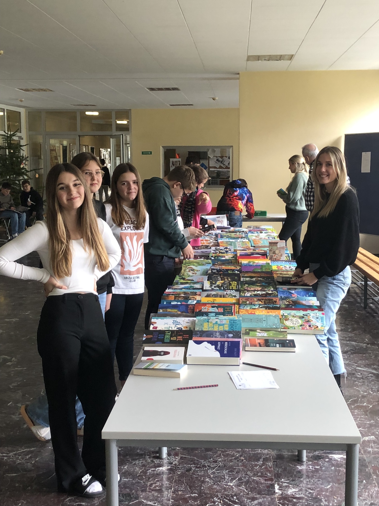 Es ist zur Tradition geworden, dass am Elternsprechtag in der Aula von der Buchhandlung Haček Bücher zum Verkauf angeboten werden. Die Schüler*innen können geordnet am Vormittag in den Büchern schmökern. Herzlichen Dank den Student*innen der PPS4 /Deutsch für die Mithilfe beim Verkauf während des Elternsprechtages.